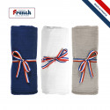 SUR-MESURE Plaid double épaisseur contrecollé 420g/m² Coloris : gris clair, taupe, lavande, bleu pétrole Marquage : gravure sur patch 7x7cm Quantité mini : 100 pièces Pantone possible à partir de 250 pièces Fabriqué en Europe