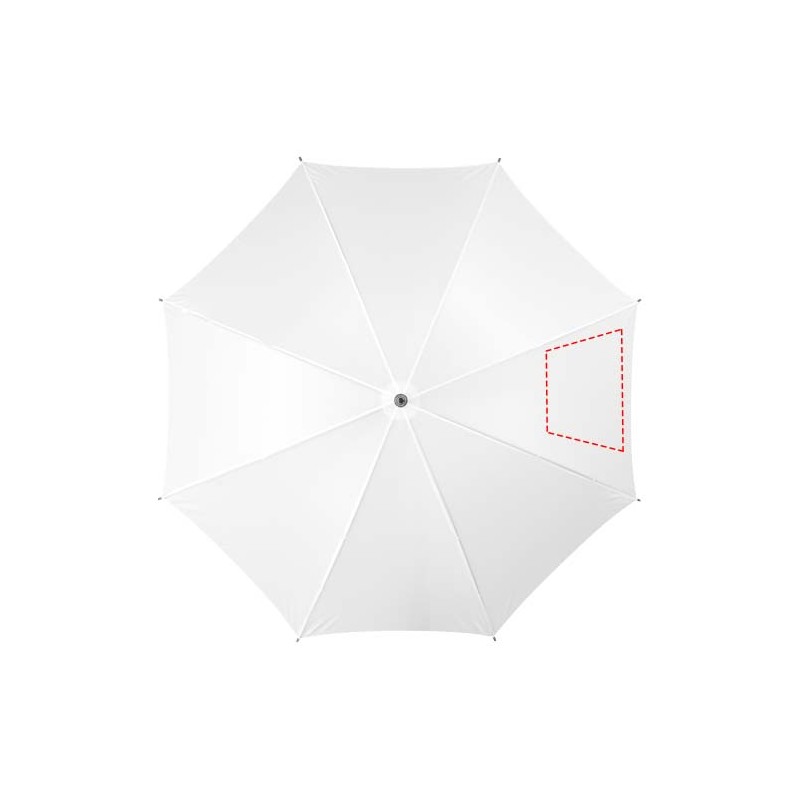 Parapluie 23" avec poignée en bois, mât en bois et baleines en métal.