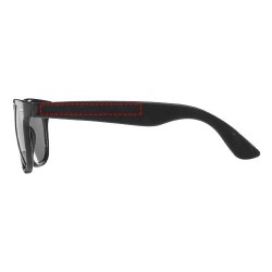 Ces lunettes de soleil au design rétro constituent un cadeau publicitaire idéal lors des festivals d'été, des événements ou d'autres activités de plein air ensoleillées. Ces lunettes sont conformes à la norme EN ISO 12312-1 et possèdent des verres UV400 classées en catégorie 3, ce qui en fait le choix idéal pour se protéger des rayons du soleil. Grâce à la matière plastique PC, les lunettes de soleil sont légères et confortables à porter.