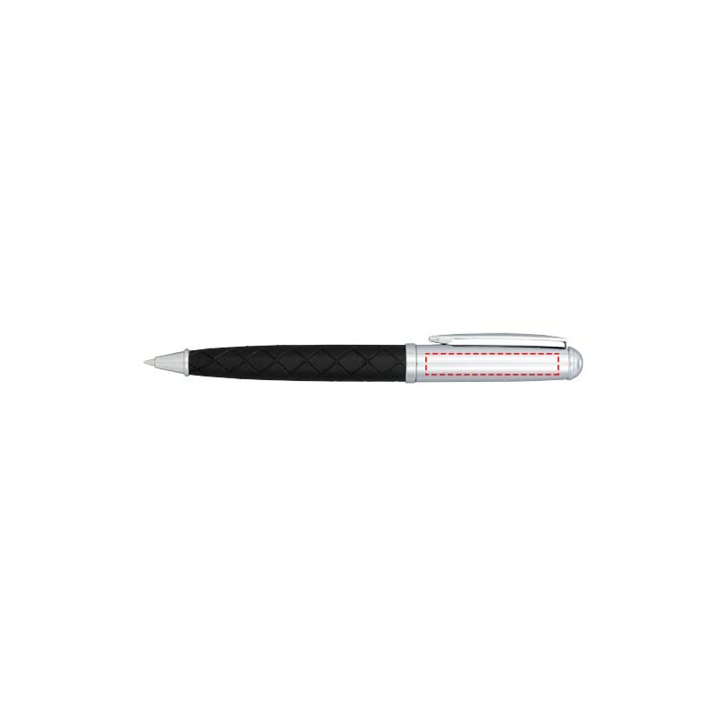 Stylo à bille au design exclusif avec corps inférieur recouvert de motif en croix en cuir. Recharge de qualité supérieure d'encre noire incluse dans une boîte cadeau « LUXE » (16 x 4,5 x 2,5 cm).